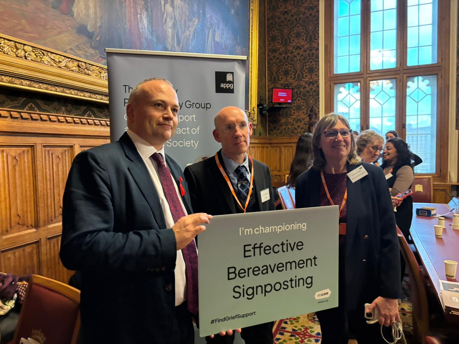 A special parliamentary event today, hosted by the All-Party Parliamentary Group (APPG) on Grief Support and the Impact of Death on Society, has underlined a national lack of access to bereavement support and called for central signposting via AtaLoss.org.